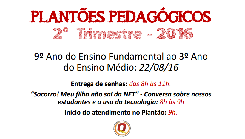 PLANTÃO PEDAGÓGICO - 2º TRIMESTRE 2016