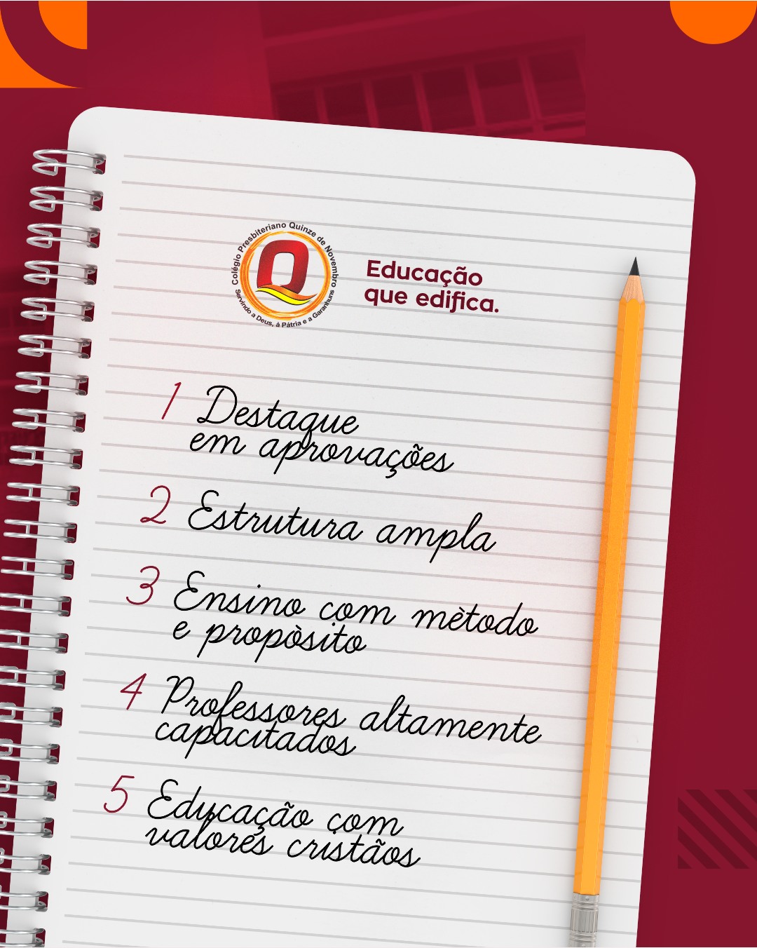 No Colégio Presbiteriano Quinze de Novembro, seu filho encontra um ambiente onde o conhecimento e a fé caminham juntos.
