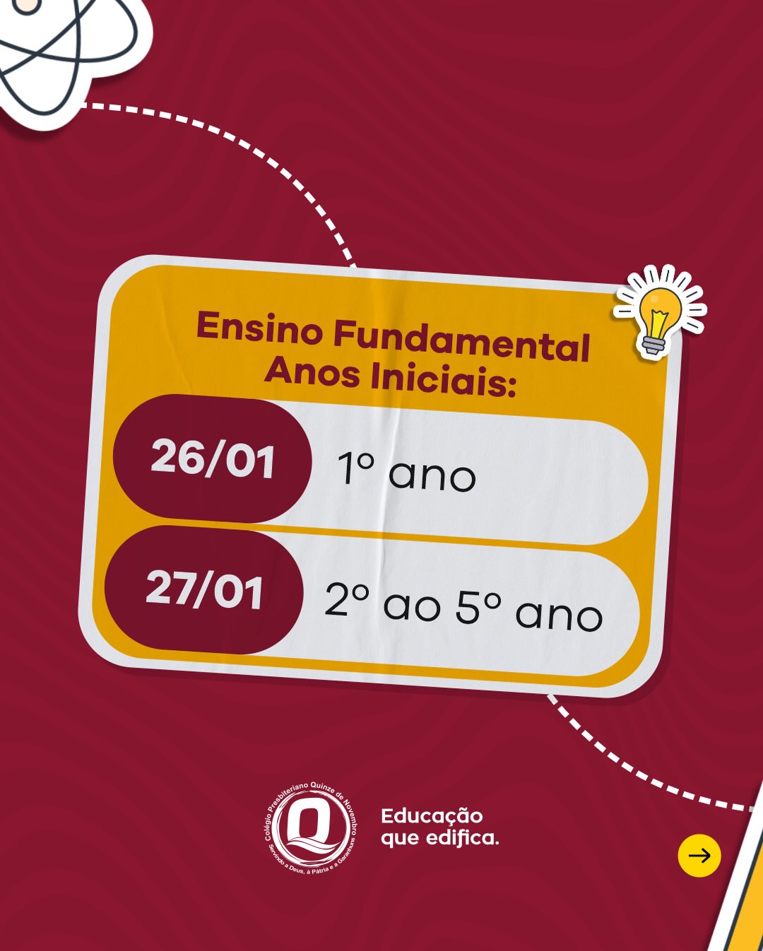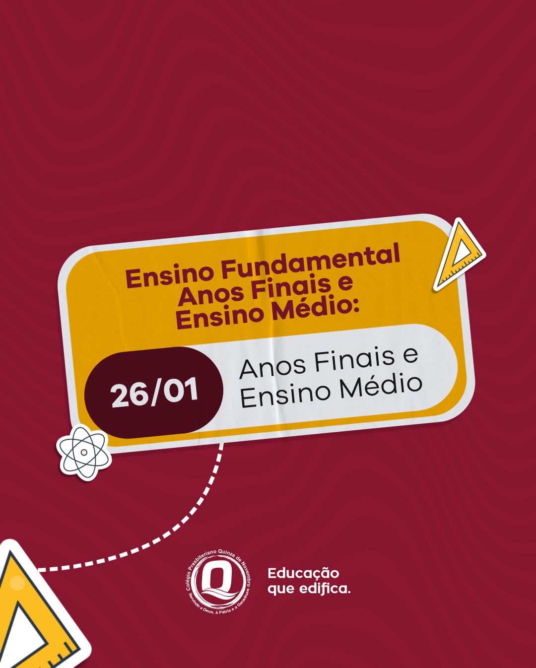 Confira o calendário de volta às aulas do Colégio Presbiteriano Quinze de Novembro e prepare-se para recomeçar com propósito.