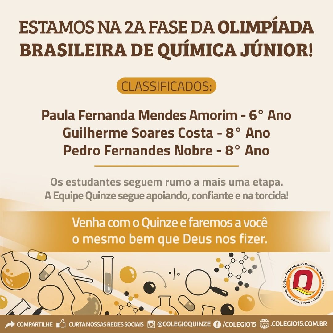 Mais uma conquista a comemorar: nossos alunos do Fundamental Anos Finais seguem na OBQJr. Estamos na torcida!!!!