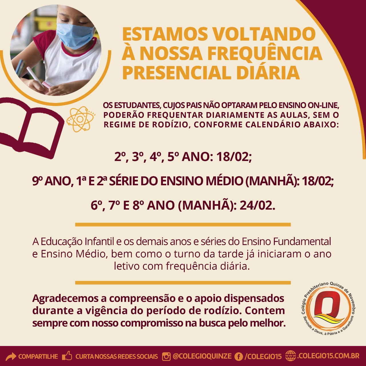 ESTAMOS VOLTANDO À NOSSA FREQUÊNCIA PRESENCIAL DIÁRIA