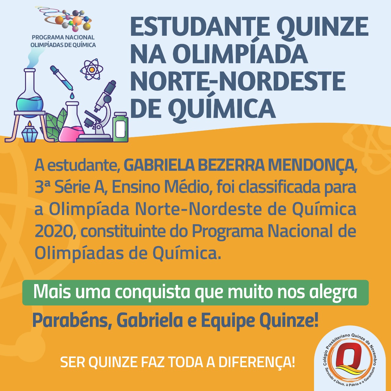 ESTUDANTE QUINZE NA OLIMPÍADA NORTE-NORDESTE DE QUÍMICA