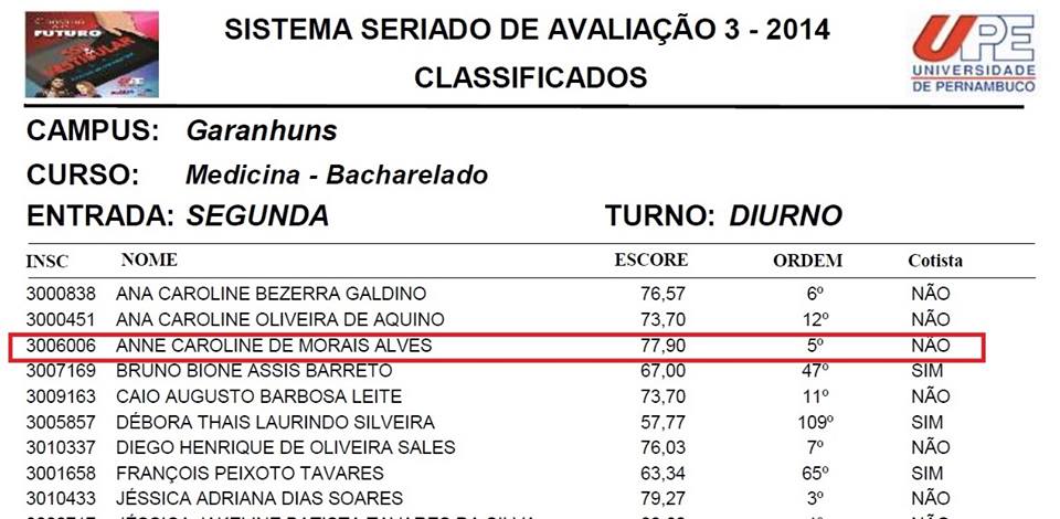5º LUGAR EM MEDICINA - UPE - CAMPUS GARANHUNS