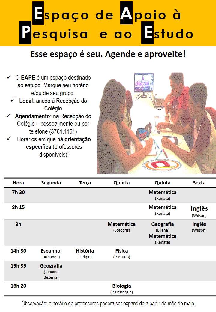 Horário do EAPE - Espaço de Apoio à Pesquisa e ao Estudo