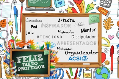 A ACSI se alegra em celebrar o Dia do Professor! Um dia dedicado a relembrar o valor desse trabalho e das pessoas que o fazem! Oramos para que Deus renove e fortaleça as suas forças para que a cada dia você seja um instrumento Dele na sala de aula.