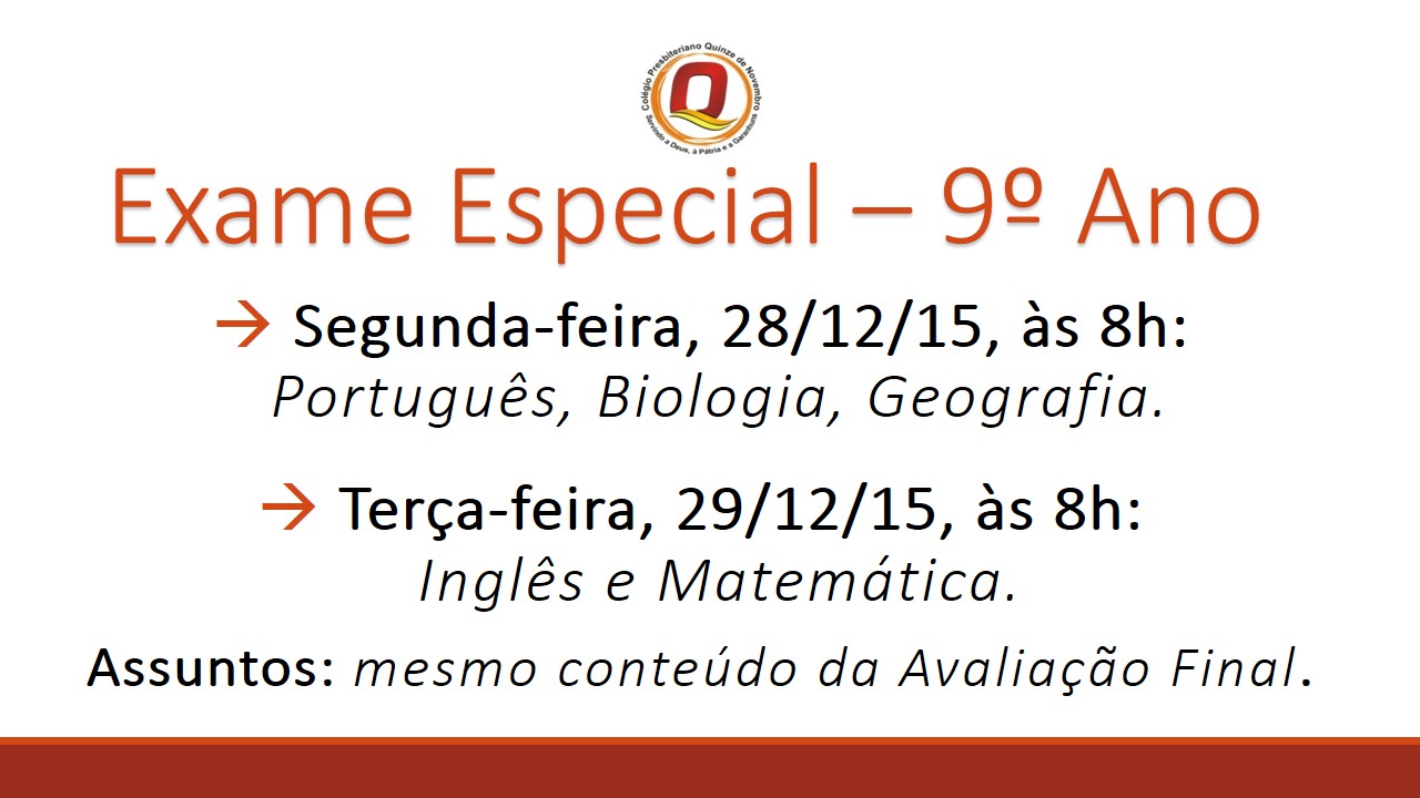 Exame Especial – 9º Ano - 2015