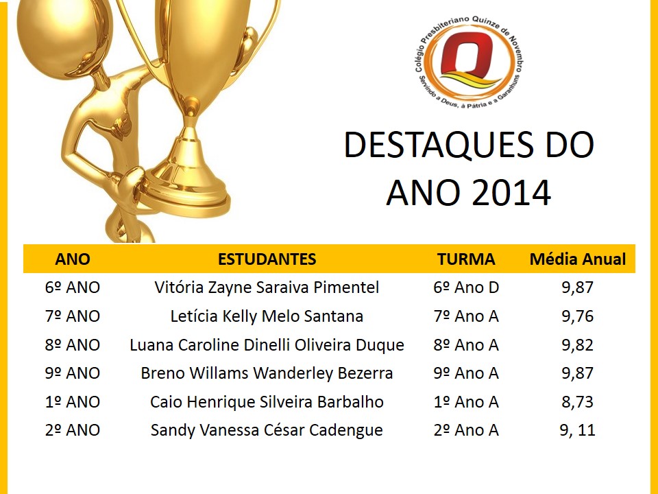 DESTAQUES 2014 DO 6º AO 2º ANO