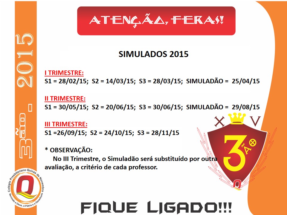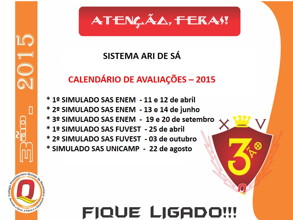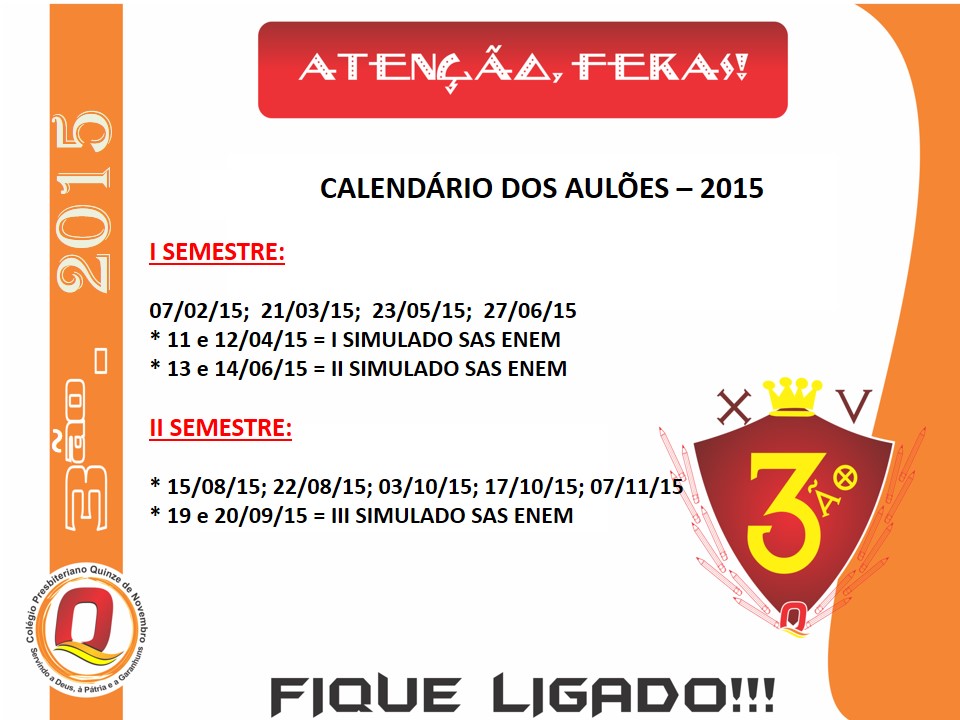 CALENDÁRIOS 3ÃO - 2015