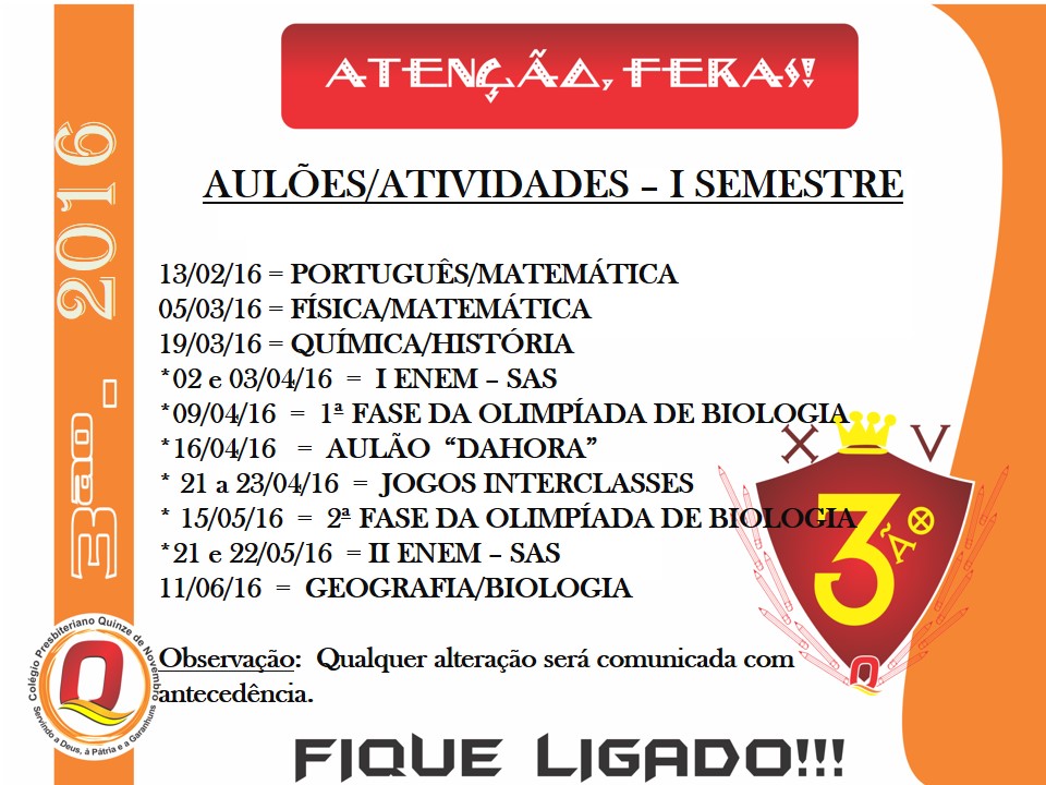 ATIVIDADES 3º ANO - I SEMESTRE 2016