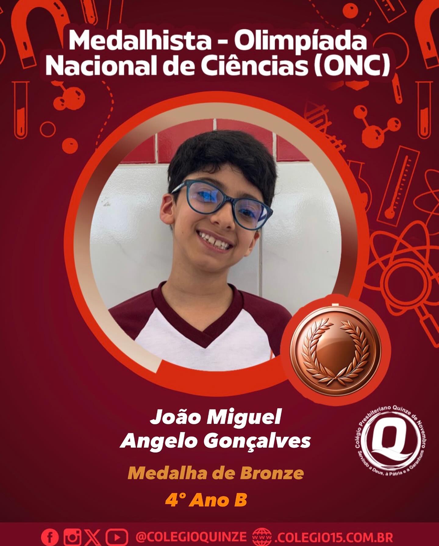 - Nossa aluna Ana Sofia Santana de Matos, do 7º Ano C, será a representante do Colégio Quinze no Concurso de Desenhos do Lions International, com o tema “Juntos Somos Um”