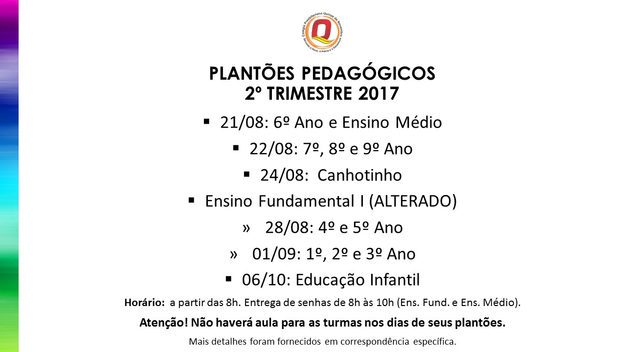 Plantões Pedagógicos -2º Trimestre