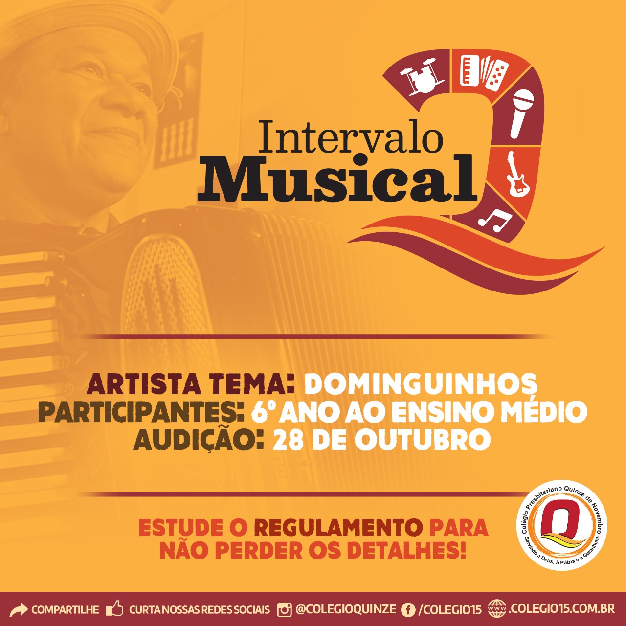Após dois anos de pausa, está chegando o Intervalo Musical. A novidade é que este ano houve a eleição de um artista tema. Valorizando a nossa cultura, o nome escolhido foi Dominguinhos!