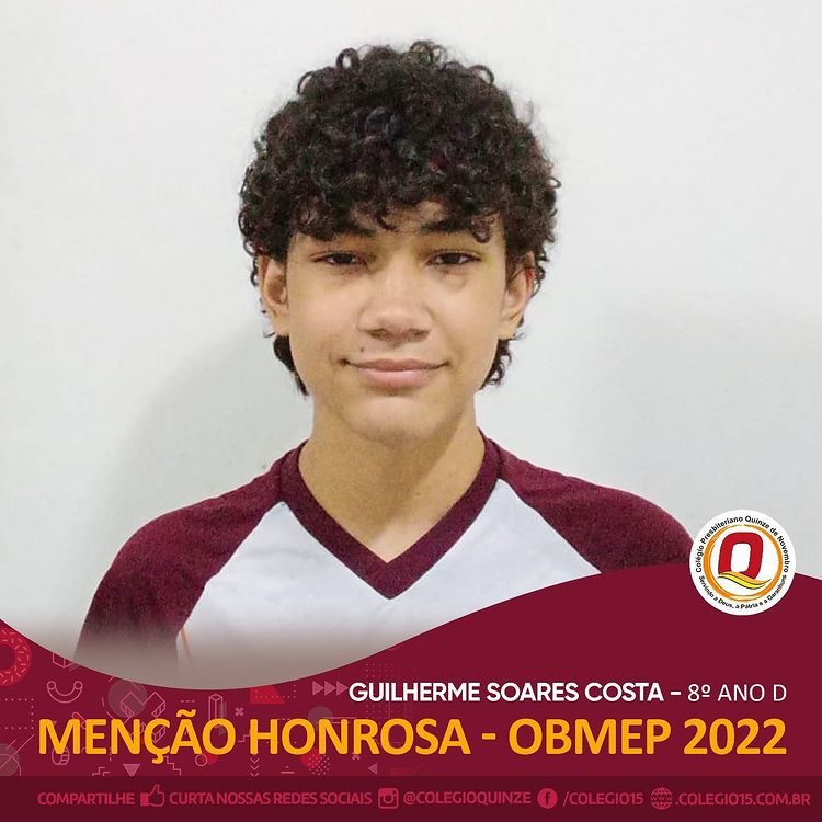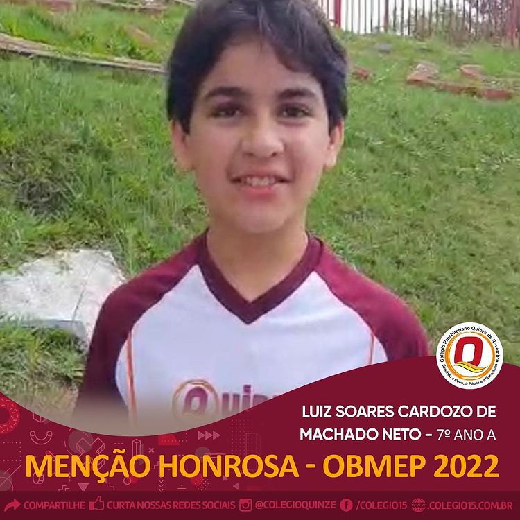 Nossos alunos Luiz Soares Cardozo Machado Neto e Guilherme Soares Costa receberam Menção Honrosa na Olimpíada Brasileira de Matemática e Português