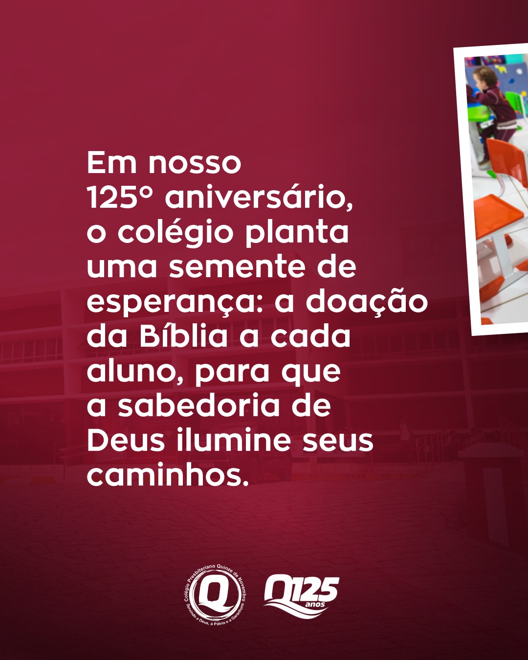 Registro da entrega de Bíblias doadas aos nossos estudantes, em comemoração aos 125 anos do Colégio Presbiteriano Quinze de Novembro. Que esta Palavra seja a base para a vida de cada um.