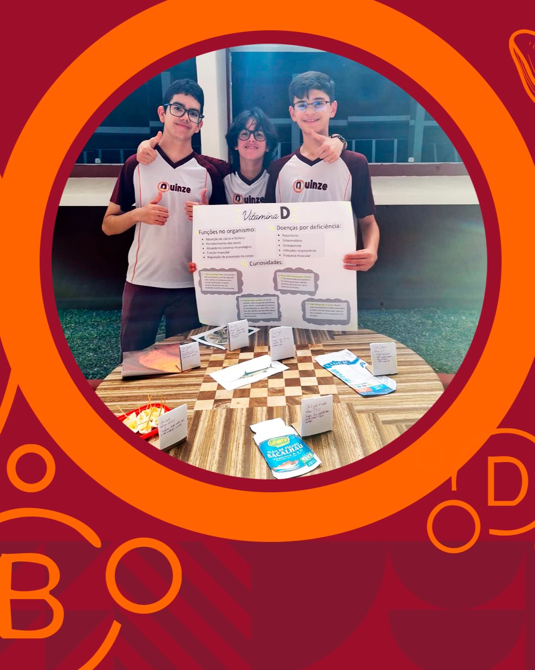 Na nossa feira, teoria e prática se encontraram de forma criativa, com estudantes envolvidos em cada etapa: da preparação à apresentação, compartilhando informações importantes sobre alimentação saudável.