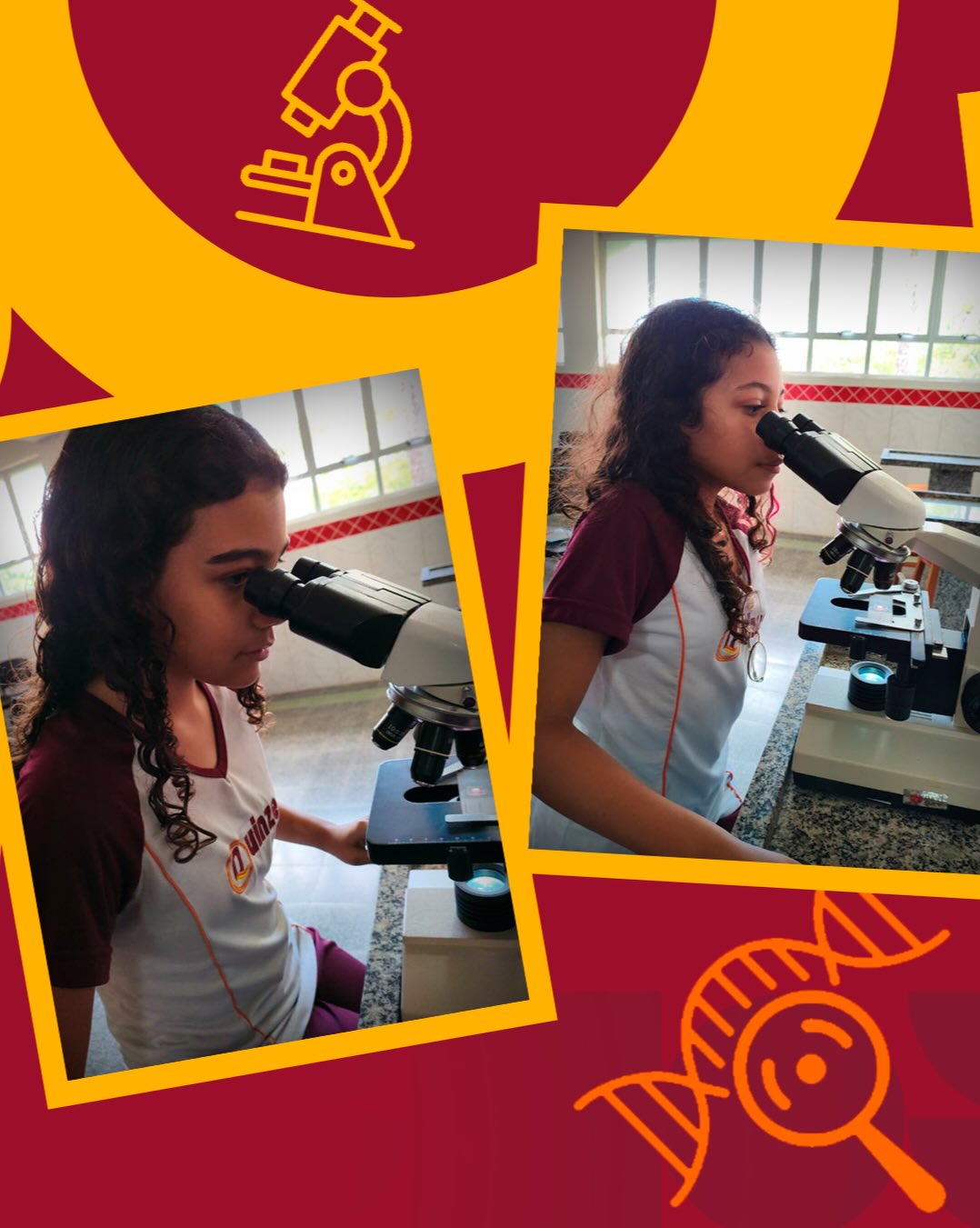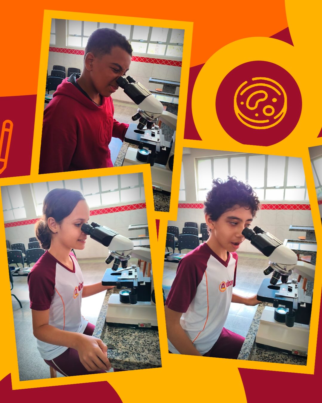 Sob a orientação da professora de Ciências ,Telma Magno, os estudantes exploraram as partes do microscópio e se aventuraram na visualização de lâminas com células.