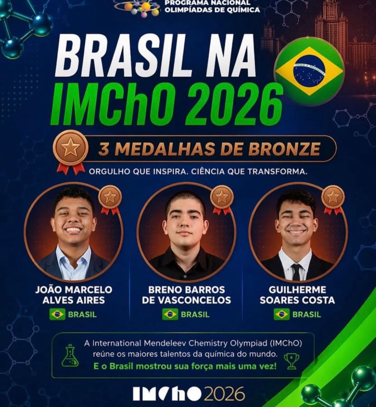 Hoje, celebramos uma conquista grandiosa: o nosso ex-aluno Guilherme Soares recebeu a medalha de bronze na IMChO 2026, na Rússia, sendo um dos três medalhistas brasileiros na competição!