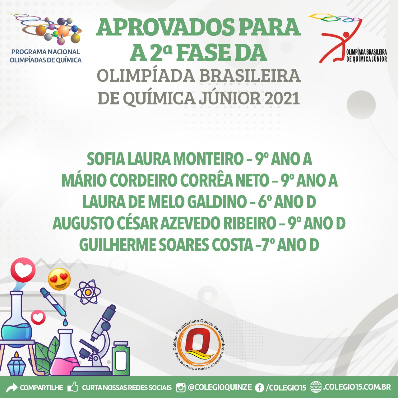 APROVADOS PARA A 2º FASE DA OLIMPÍADA BRASILEIRA DE QUÍMICA JÚNIOR 2021
