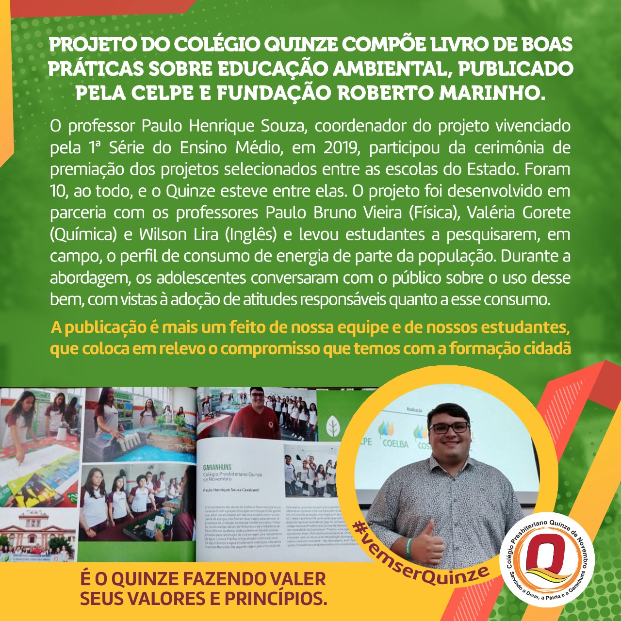 PROJETO DO COLÉGIO QUINZE COMPÕE LIVROS DE BOAS PRÁTICAS SOBRE EDUCAÇÃO AMBIENTAL
