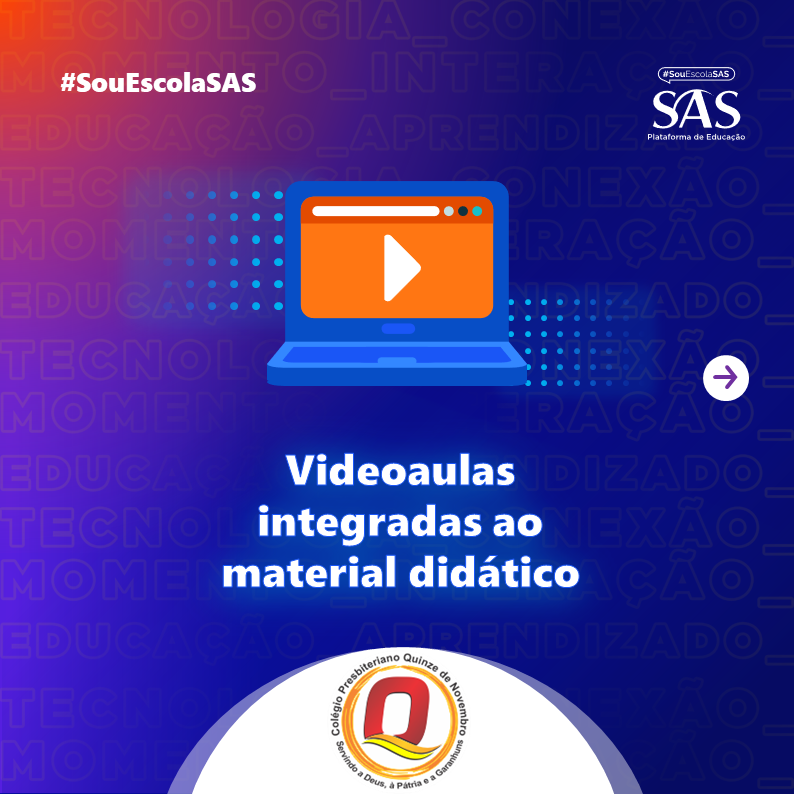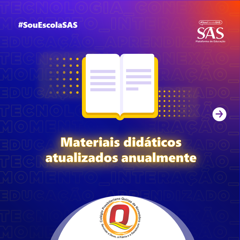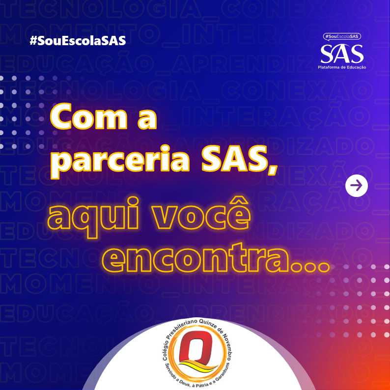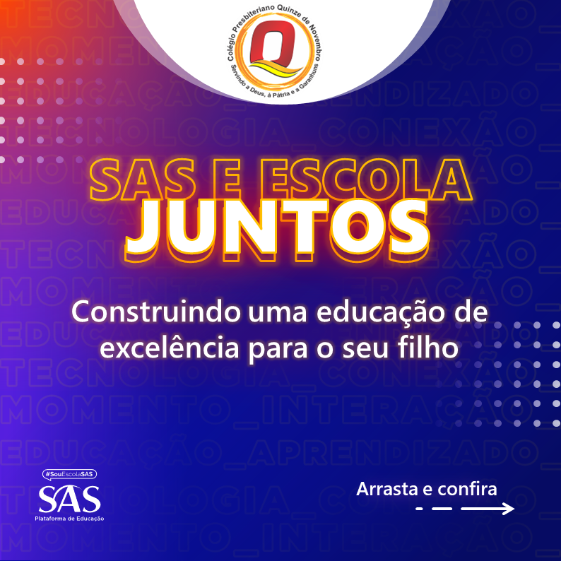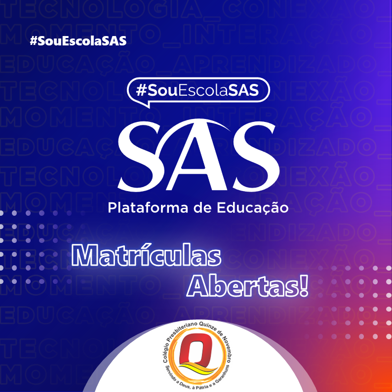 Ser uma escola SAS é prezar pela educação de excelência para o seu filho. Ao matricular seu filho na nossa escola, você está garantindo para o seu filho, além dos nossos professores dispostos a ajudar e formar nossos alunos: