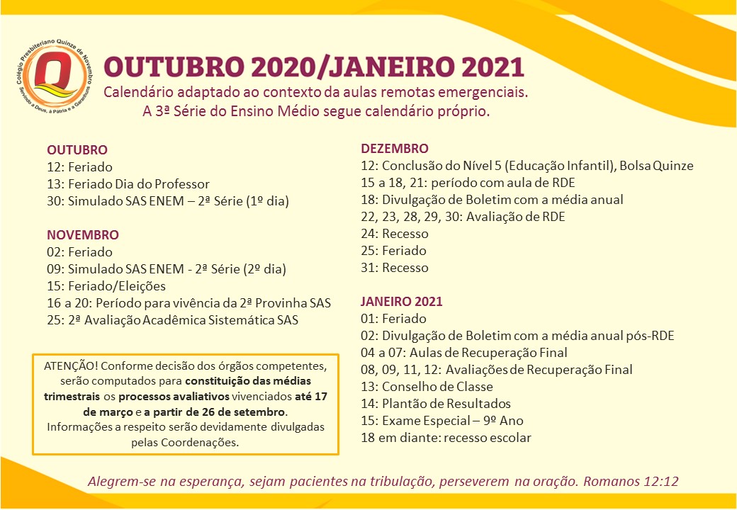 Next article: RETORNO ÀS AULAS PRESENCIAIS - NOVAS INFORMAÇÕES (30/10)