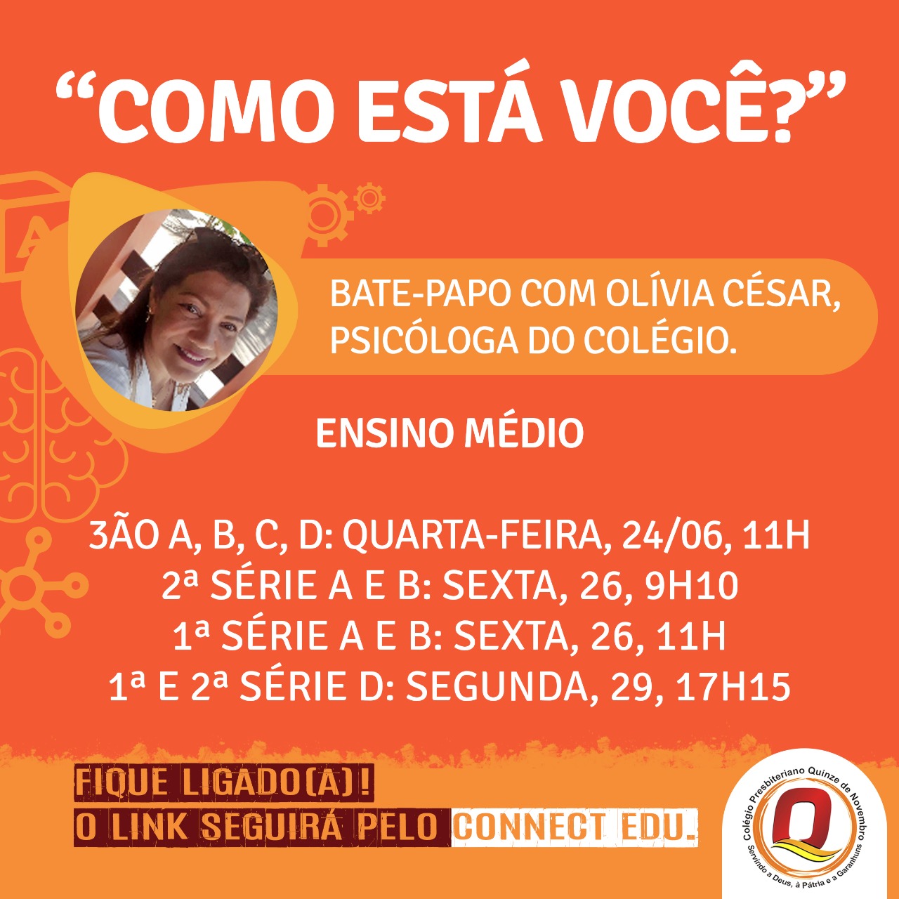 "COMO ESTÁ VOCÊ?" BATE PAPO COM OLÍVIA CÉSAR, PSICÓLOGA DO COLÉGIO