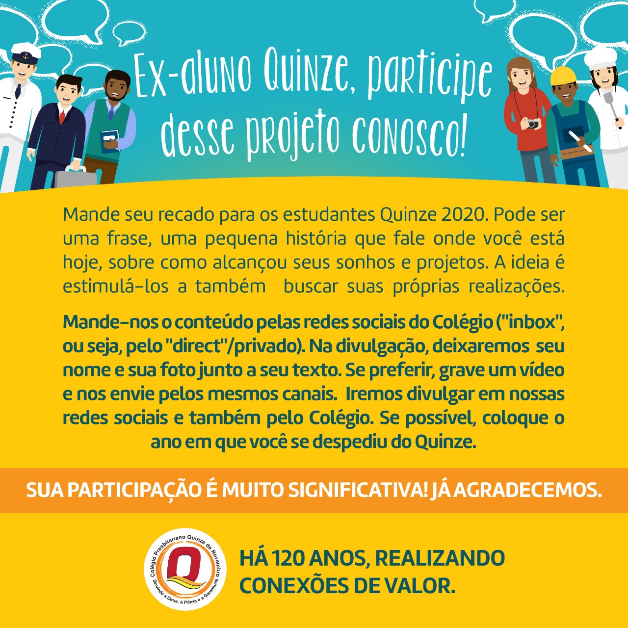 Ex-aluno Quinze, participe desse projeto conosco!