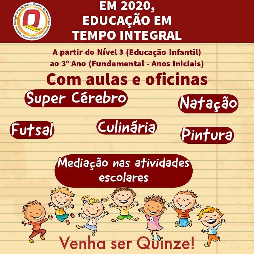 Em 2020, Educação em Tempo Integral