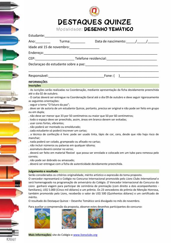 VISUALIZAR EM PDF - Ficha de Inscrição 2017 - Desenho Temático