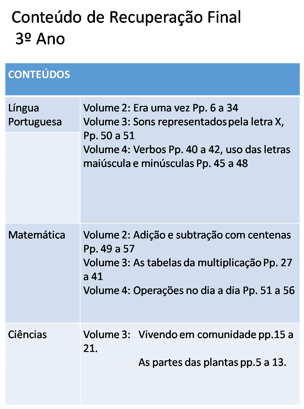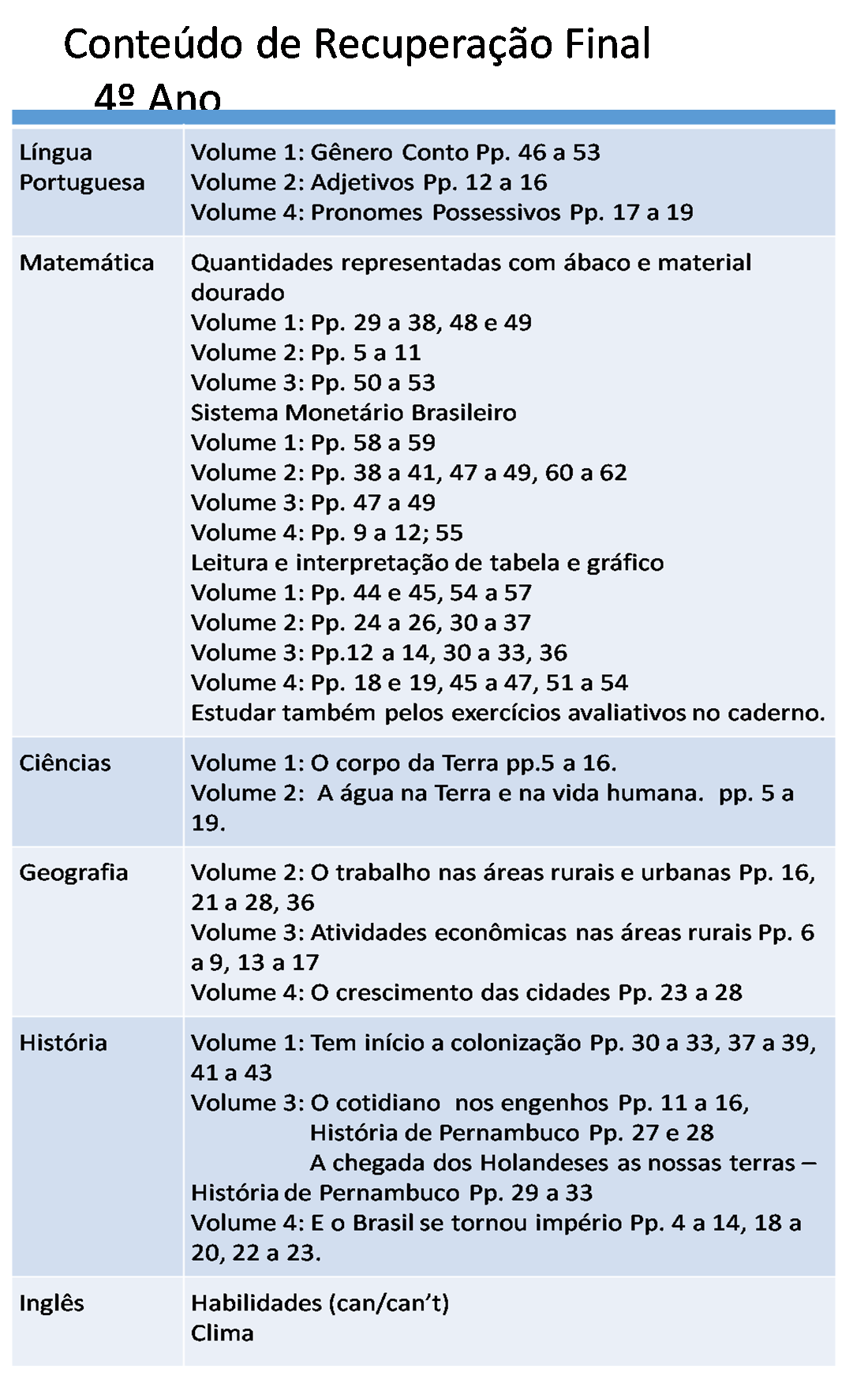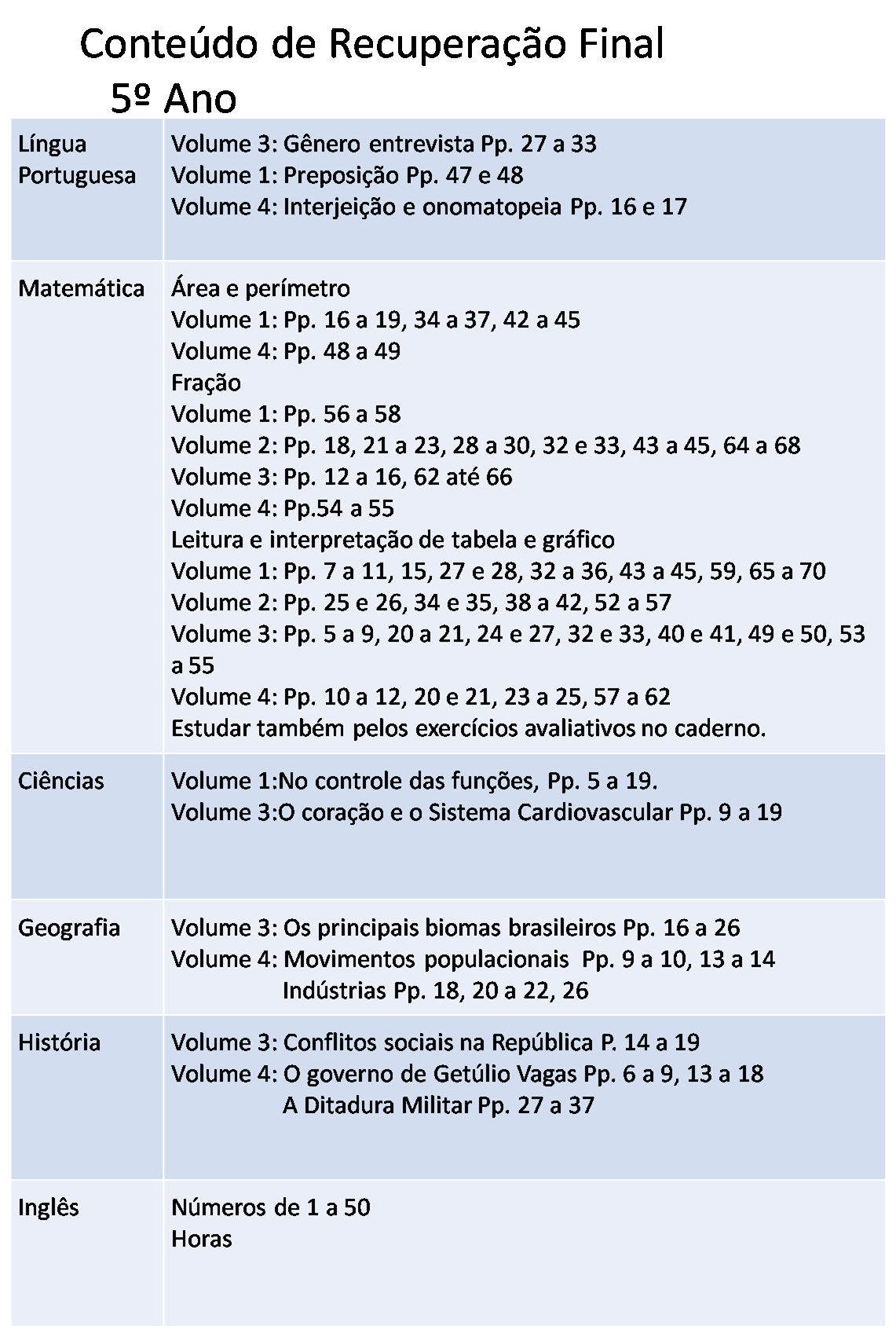 CONTEÚDOS DE RECUPERAÇÃO FINAL