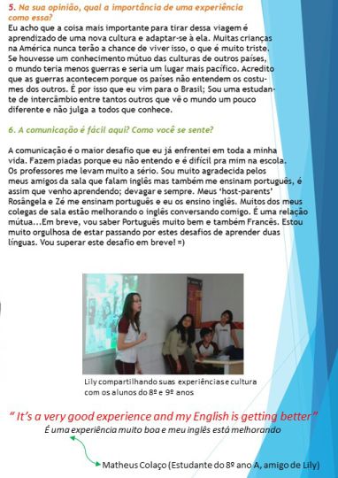 Americana vive e possibilita ricas experiências como estudante do Quinze.