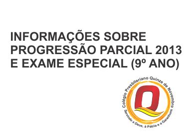 Read more: INFORMAÇÕES SOBRE PROGRESSÃO PARCIAL 2013 E EXAME ESPECIAL (9º ANO)