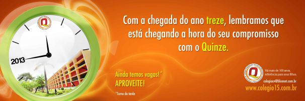 Com a chegada do ano treze, lembramos que está chegando a hora do seu compromisso com o Quinze.Ainda temos vagas.