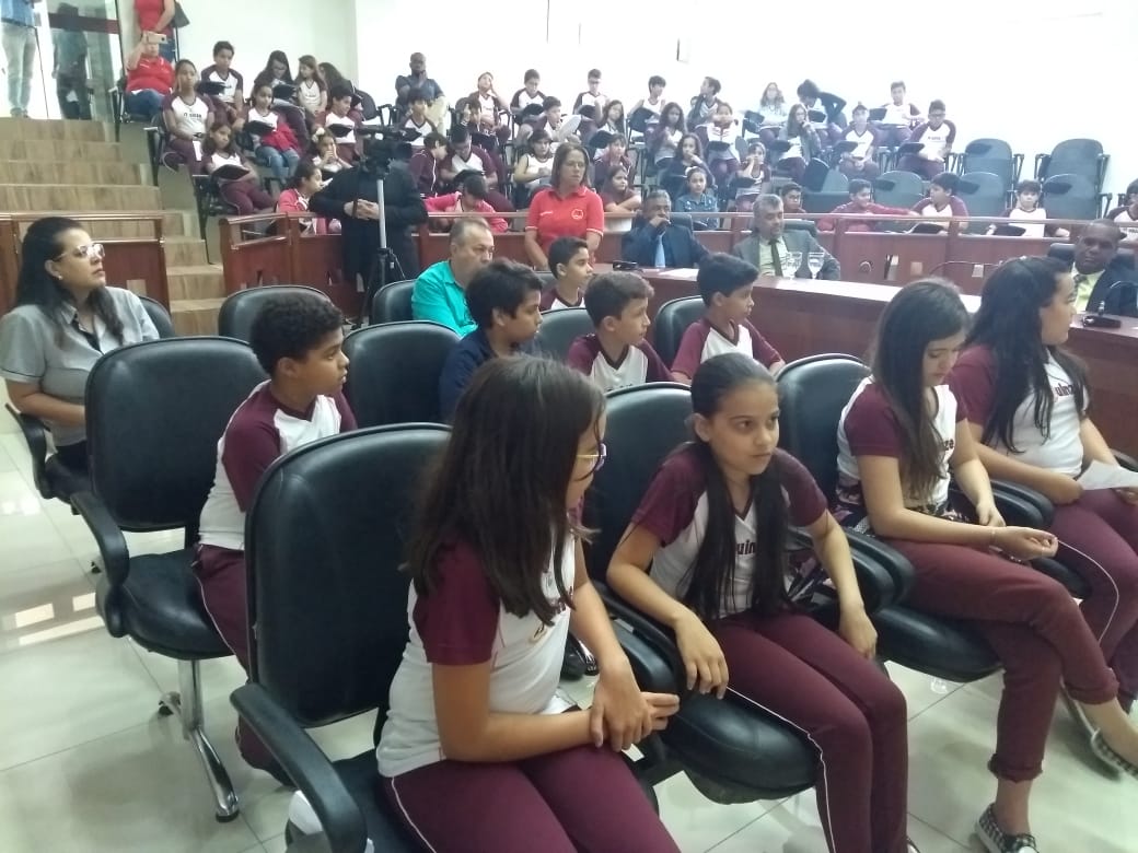 - Estudantes conduzindo cântico de louvor a Deus - Culto do 2º Ano