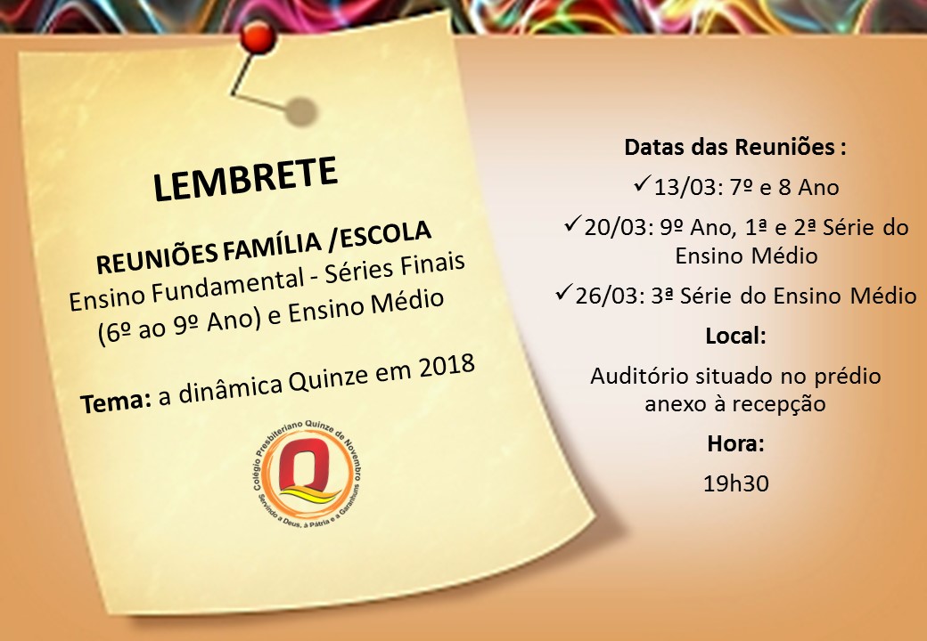 LEMBRETE - REUNIÕES FAMÍLIA/ESCOLA